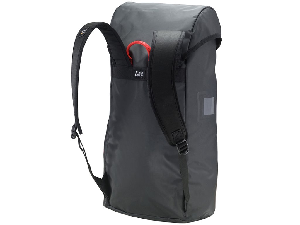 Pracovní vak s objemem 40 l vyrobený z vysoce mechanicky odolného materiálu Tarpaulin PVC 500D. Vak používá pro uzavření stahovací horní smyčku a víko, které sev předu fixuje pomocí kovové spony. Pevnostní zadní madla je navržené do zatížení 50kg. Vak má k dispozici polstrované ramenní popruhy. Horní víko obsahuje jednu vnitřní kapsu se zipem.Vysoká odolnost.