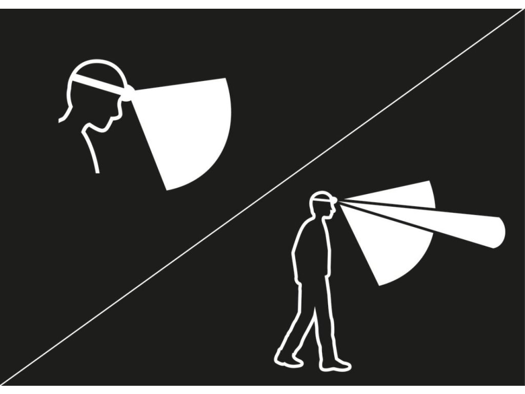 - Kombinovaný kužel světla, široký a úzký zaostřený, poskytující pohodlné osvětlení pro blízké okolí a pohyb.