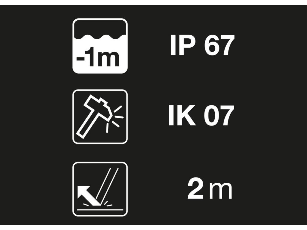 - Odolnost: IP67, IK07