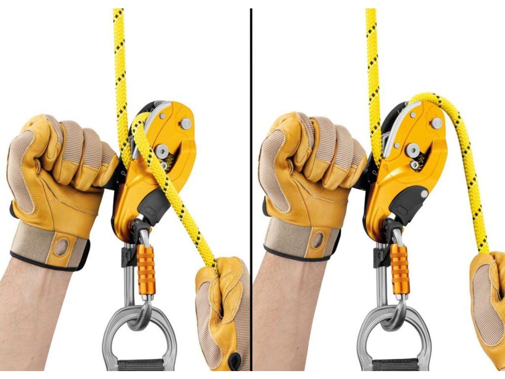 - Jakmile je lano zablokováno, je možné provádět krátké výstupy bez manipulace s rukojetí pouhým dobíráním/protahováním lana.