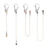 Statický lanyard různé délky se zašitou MGO karabinou s dlaňovou pojistkou. Každá délka lanyardu je v místě spoje s karabinou barevně odlišena od ostatních délek.